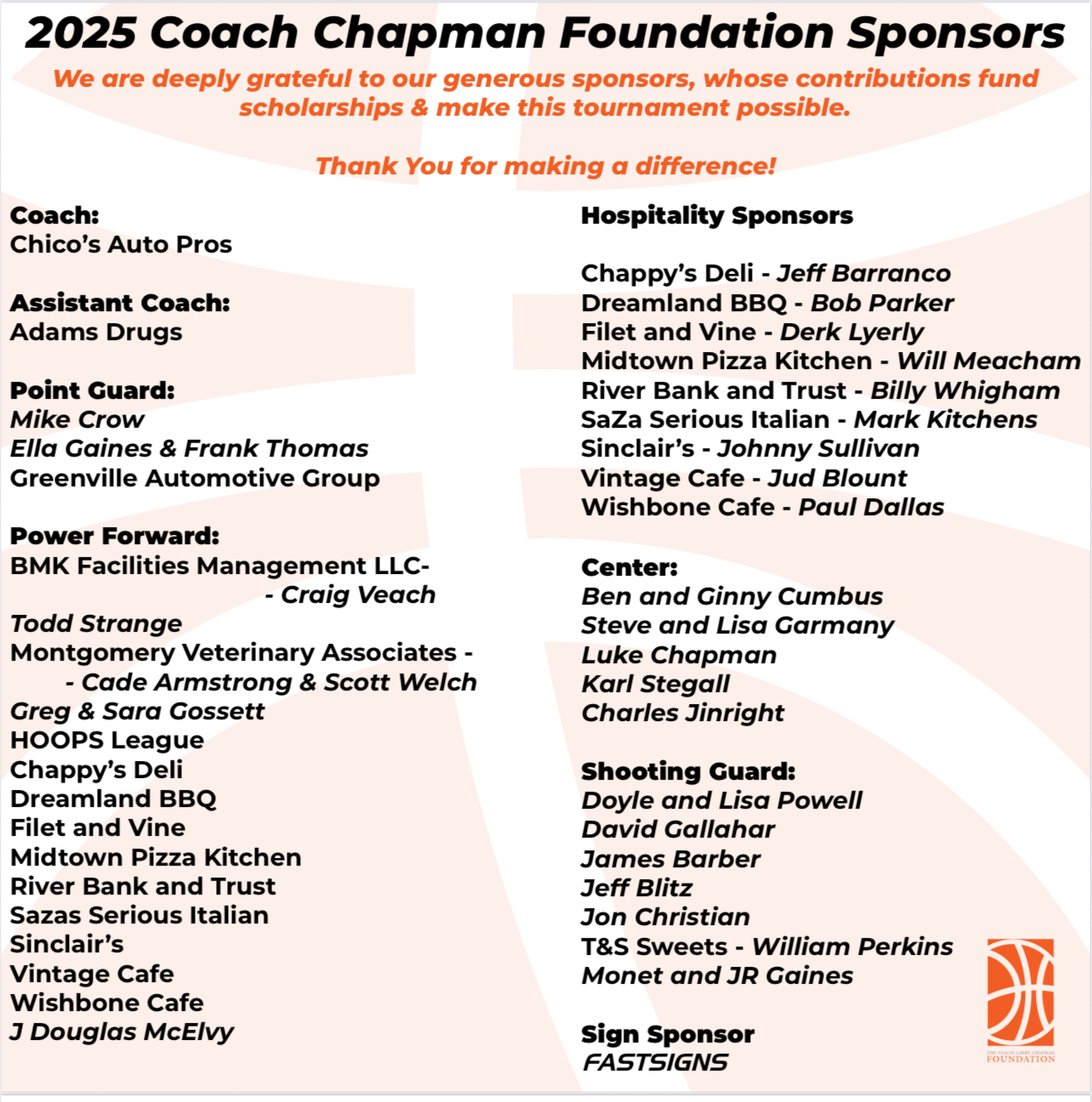 Coach Chapman Foundation Sponsors